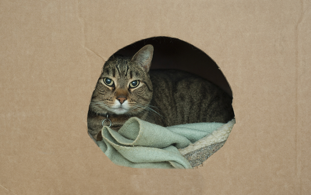 Crea una guarida para tu perrito o gatito con cajas de cartón y pon dentro sus mantitas favoritas y un polo tuyo (preferible usado, sudado) para que sientan tu aroma. Contrúyeles esa guarida con semanas de anticipación para que se acostumbren a esta y la sientan como un verdadero refugio!