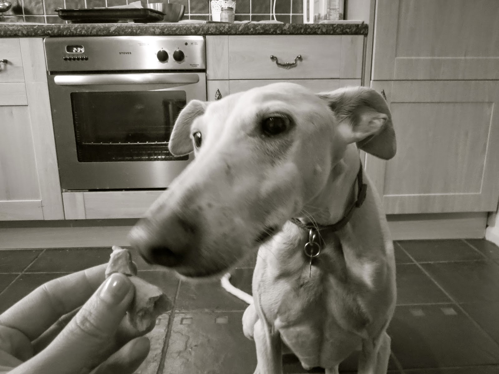 Con el horno precalentado, horneamos durante 20 minutos (más o menos) a 180º.Ya sólo queda que se las des a tu perro y disfrutes de cómo se relame y él de lo buenas que están. Os dejo el proceso de Caballero.