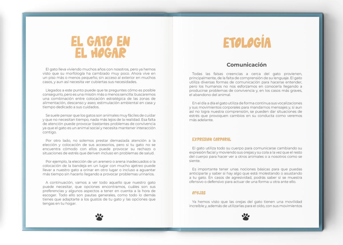 ¿Qué encontrarás en el libro? En él te hablo del gato en su conjunto. Comienzo mostrándote como han sido los inicios de su vida junto a nosotros para continuar analizando su anatomía y terminar viendo lo que necesita, cómo se comunica con nosotros y cómo detectar que algo no va bien.Te dejo por aquí la sinopsis, donde te cuento a grandes rasgos lo que encontraras entre sus páginas.