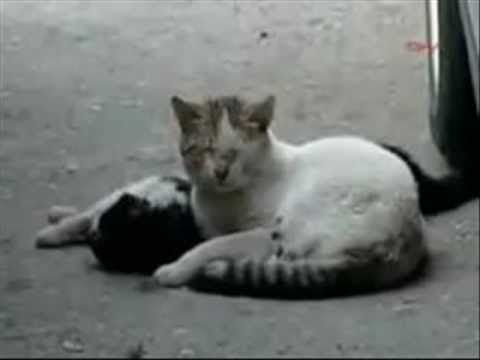 El primero video es de un gato que durante varios minutos intento hacerle un masaje cardíaco a su amigo que yacía en el suelo sin poder despertar. Algo que sorprende mucho, es que el masaje es muy parecido a los que suelen realizar los especialistas para reanimar a los enfermos.