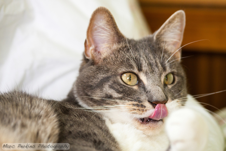- Lamerse la nariz: si tu gato se lame la nariz, es un gesto de fastidio. Los gatos realizan este movimiento cuando algo no esta siendo de su agrado. No tiene porque ser algo que les enfade o que vayan a reaccionar con agresividad, pero simplemente está diciendo que desearia que parases de hacer lo que quiera que estes haciendo. Por ejemplo, si estas achuchando a besos a tu gato, y ves que se lame la nariz, puede que prefiera que pares. No confundir este gesto con lamerse despues de comer... cuando terminan de comer los gatos lamen las comisuras de los labios y la nariz con objeto de limpiarse, pero son dos cosas no relacionadas.