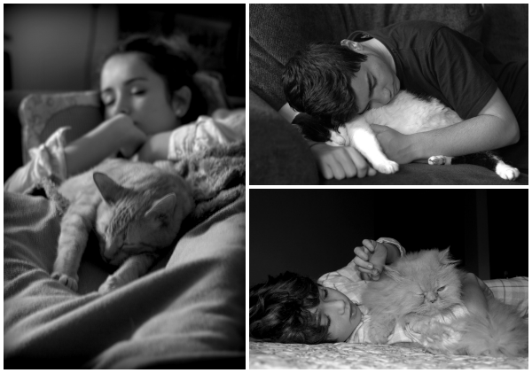Creo que mi vida no sería igual sin gatos, ellos me conectan con mi yo más ancestral y salvaje; el tacto de su pelo me relaja y me hacer sentirme bien, su compañía discreta y silenciosa llena mis peores momentos. Es curioso como cuando estoy enferma, se acurrucan en la cama sobre mis pies, como tratando de reconfortarme..