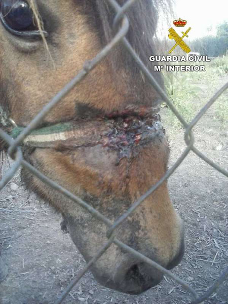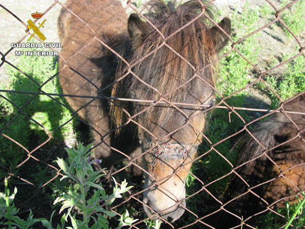 La patrulla de la Guardia Civil fue hasta la finca y comprobó que había una pareja de ponis, dos perros, varios cerdos vietnamitas y gallinas al parecer abandonados y aparentemente desnutridos. Sobre todo uno de los ponis tenía una herida abierta en la cabeza causada, al parecer, por el correaje que llevaba puesto el animal desde hace mucho tiempo.