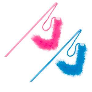 Hay muchisimos tipos de plumeros, con cascabeles, con plumas, con cuerdas, con muñecos colgando, tiras... segun el gusto del gato, pueden preferir de un tipo o de otro, y se puede ir probando.