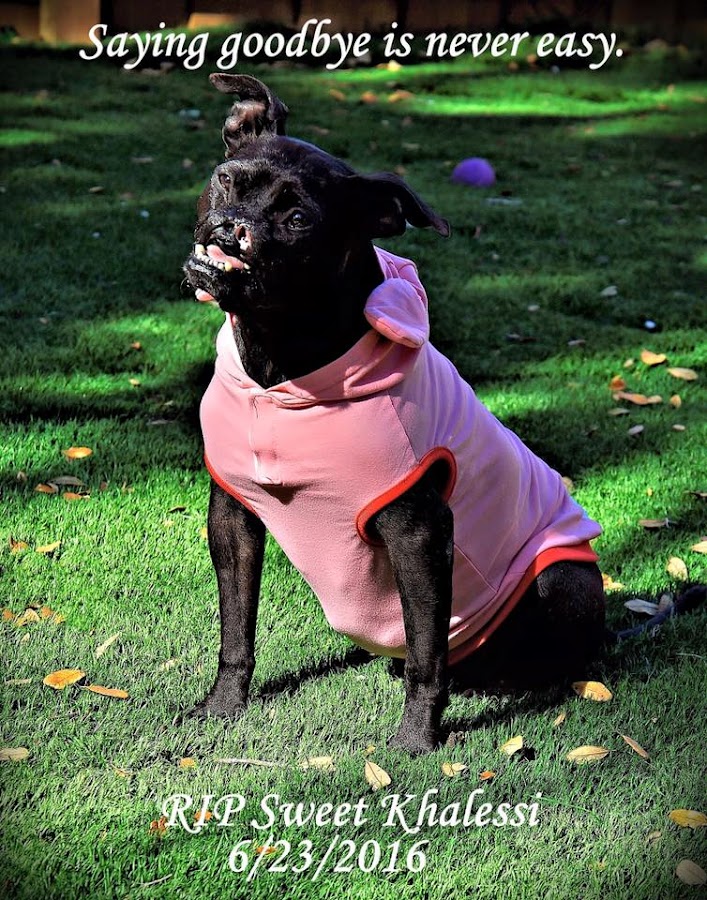 Stephanie Paquin, mamá de Khalessi, escribió una publicación de Facebook el pasado jueves diciendo que Khalessi me dijo que estaba lista y pude ver que estaba cansada. Falleció a las 8:43 a.m.