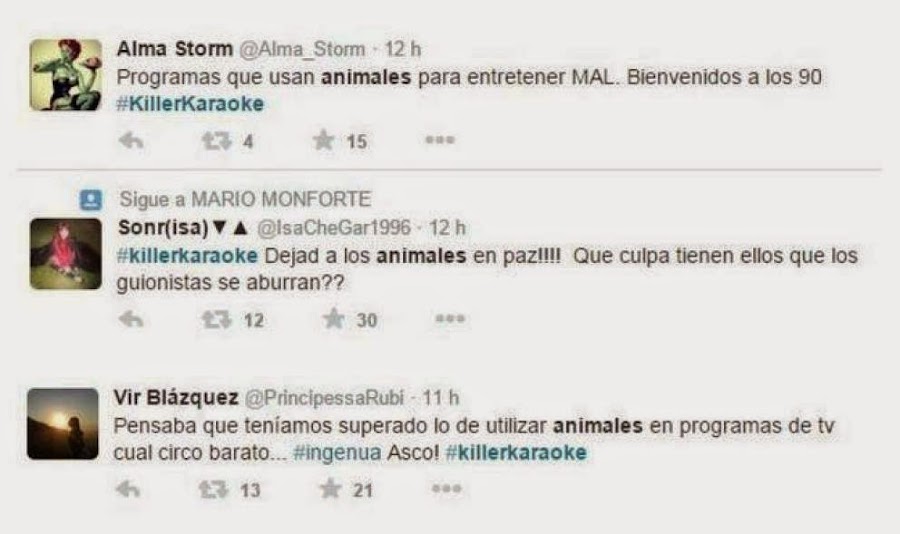 A las quejas de los usuarios en Twitter se unieron después las asociaciones. Para Javier Moreno, portavoz de Igualdad Animal, lo que ocurrió en el programa fue "vergonzoso, una falta de respeto y de maltrato animal". "Que en el s.XXI se sigan empleando animales en este tipo de concursos de televisión es increíble", asegura Moreno.