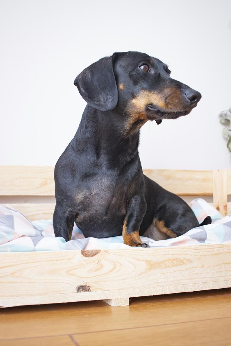 Sois muchos los que me preguntáis por la cama de Sobras. Y a todos os digo que es del chino que hay bajo de mi casa. Solo que la pobre era tan sumamente fea que le di unas cuantas pasadas de pintura azul y le hice unas fundas con una tela llamativa para el cojín. Le lavé algo la cara pero no deja de ser una cama de plastiquete del malo. Siempre he querido que tuviese una cama de madera bonita, pero quería hacerla yo y no encontraba el material idóneo. Hasta ahora, que por fin he encontrado una caja de madera con medidas apropiadas y perfecta para él.