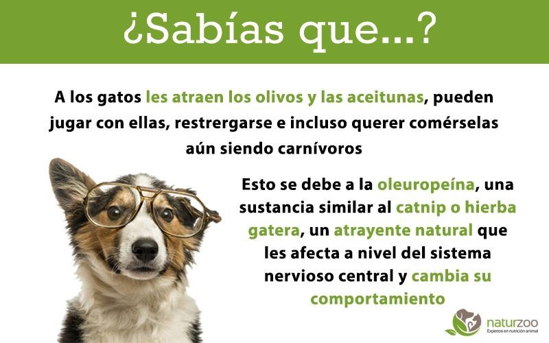 A los gatos les atraen los olivos y las aceitunas, pueden jugar con ellas, restrergarse e incluso querer comérselas aún siendo carnívoros .