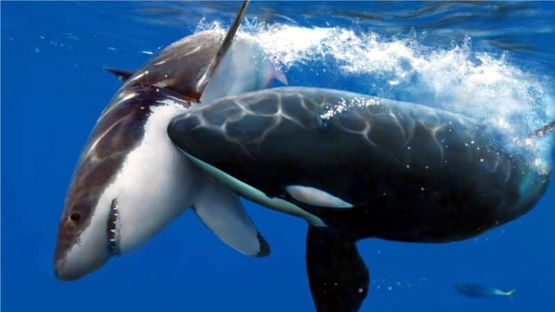 La orca está especializada en cazar a todos los animales marinos, desde más pequeños hasta más grandes, con cada especie utilizan diferentes técnicas de caza, con el tiburón blanco tienen una técnica especial