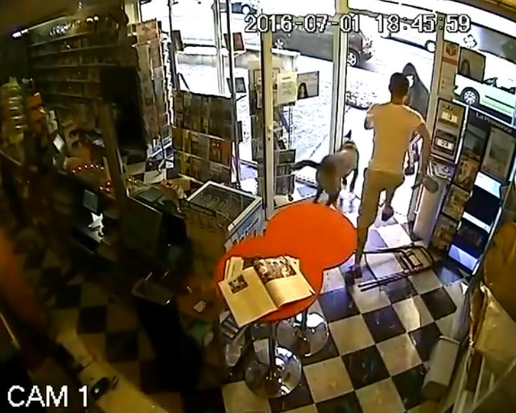 El ladrón le apunta con un arma y le indica que le dé el dinero que tiene en la caja registradora, pero cuando todo parecía perdido el perro del muchacho apareció y se abalanzó sobre el delincuente para atacarlo.