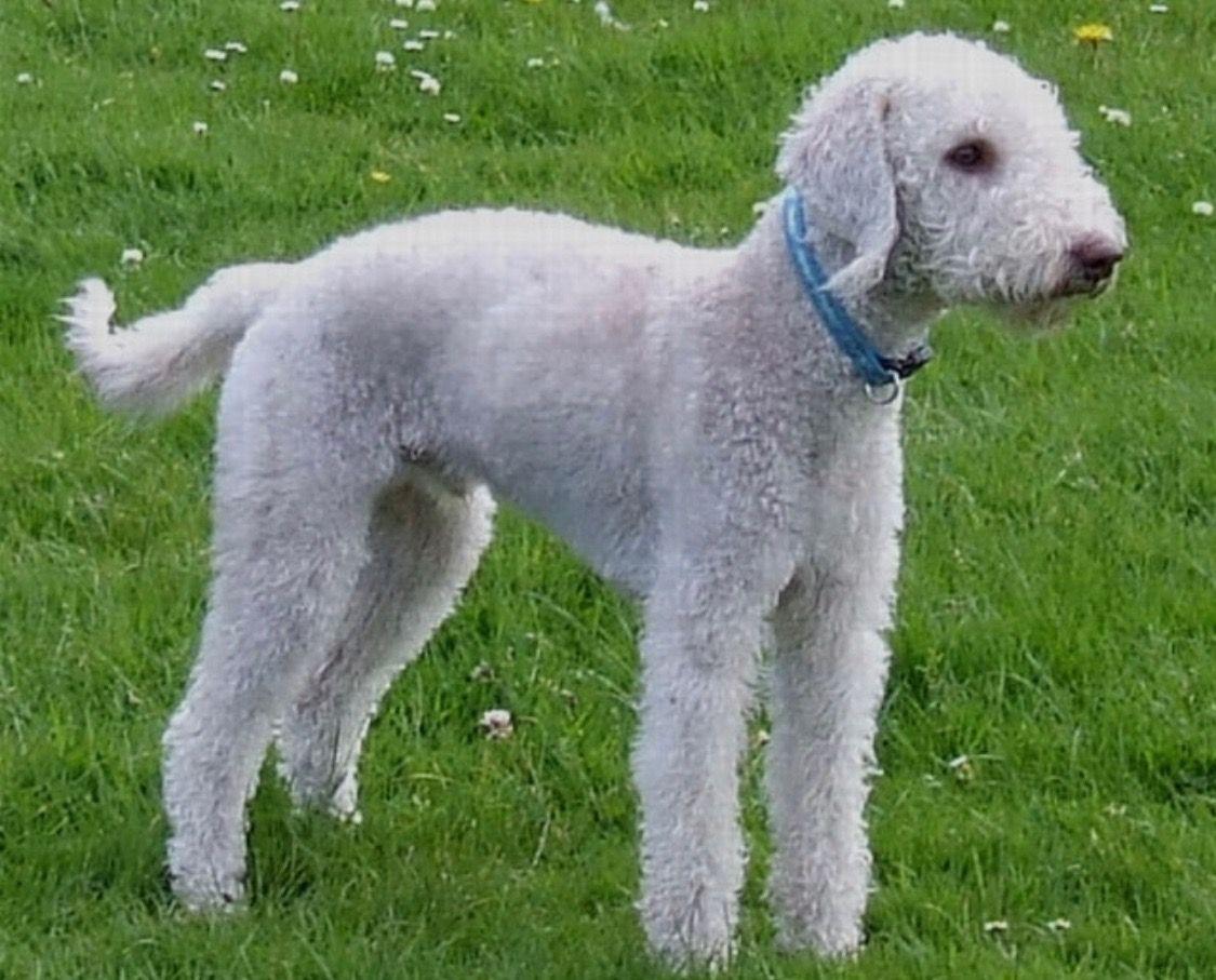 Este ejemplar canino proviene de Hungría. Es muy hábil para desempeñar cualquier deporte canino, además de tener mucha energía. Lo particular que sucede con esta raza es que existen distintos tipos, blanco, negro y manchado.Bedlington Terrier: