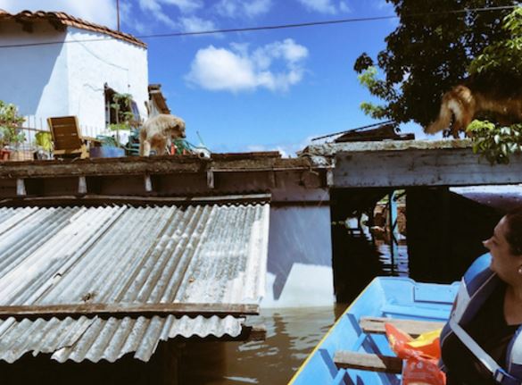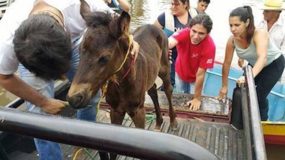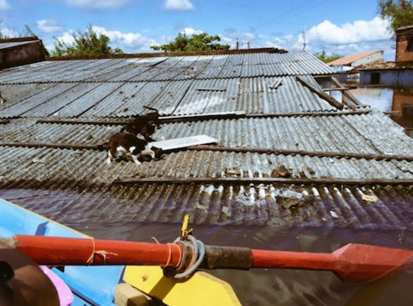 Varios activistas pro animales se adentraron este domingo en las zonas inundadas de la ciudad de Asunción para ayudar a los abandonados, según informó Pulgapp.