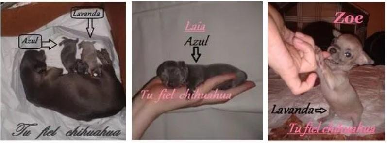 A continuación verás fotos que diferencian el color lavanda (chihuahua lila) del color azul en un chihuahua