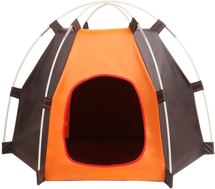 Esta casa de campaña para perros (sí, hay gente que las denomina casa de campaña) es una opción ideal para l@s amantes de la acampada o el camping que quieran darle su propio espacio a su perro. Es como una tienda para humanos, pero en tamaño perruno.