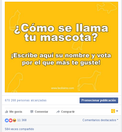 A continuación la lista de nombres de mascotas más votados en Facebook en el 2016: