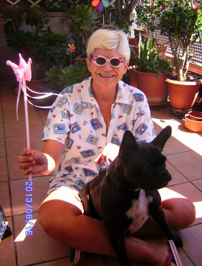 Por fin nos vamos a casa de la Yaya y menudo recibimiento, estaba también la tía y no hacían más que darme besos y caricias y decirme que me había hecho muy mayor. Me encantaba tanta atención. Entonces mamá me coloco en las orejas la dichosa diadema, las gafas y una varita enganchada a mi collar. (Mira que le encanta disfrazarme a esta mujer)