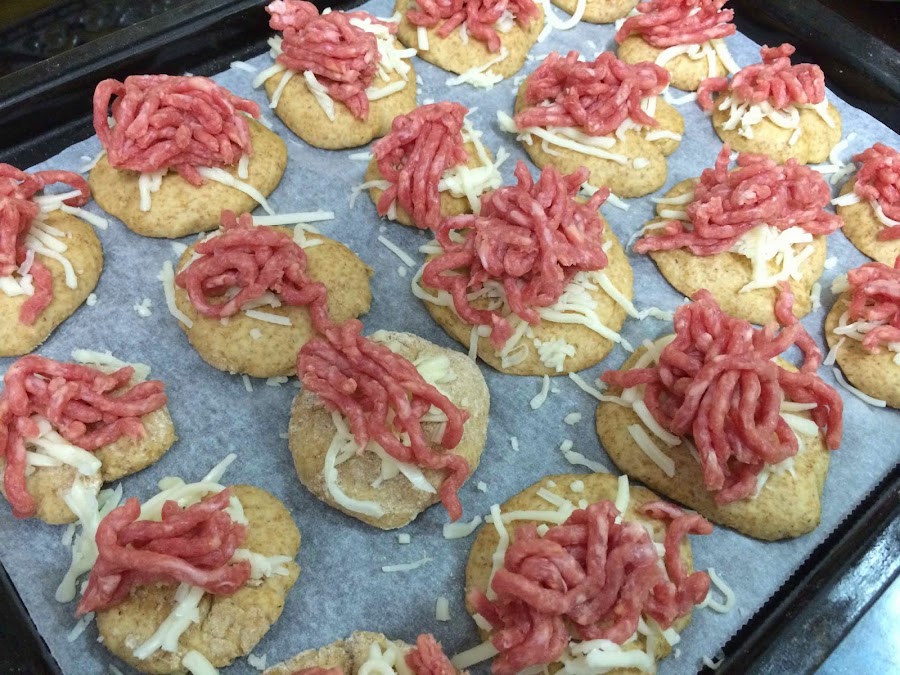 Hacemos bolitas con las manos y las "aplastamos" para formar las bases.