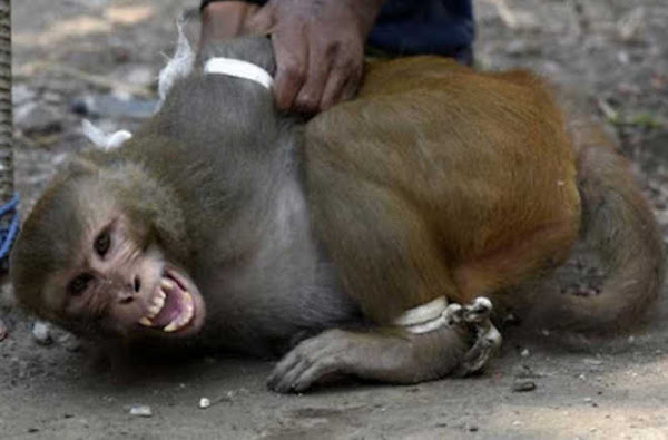 Según testigos, un mono fue capturado después de la acusación de tener comida "robada" y, por lo tanto, atado en público. Una multitud esperaba la detención y aplaudió el arresto.