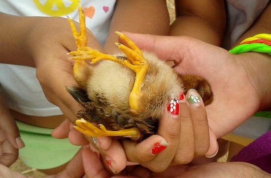 El pequeño plumífero ya tiene más de 20 días de nacido y se comporta similar al resto de «su familia»; varias plumas afloran en sus alitas y todo indica que sobrevivirá. Da gusto ver cómo se desplaza sin dificultad y con buen equilibrio, usando las dos patas inferiores. Las extra al momento de caminar no las utiliza, no poseen movimiento alguno. «Lo vamos a criar, alimentar y cuidar hasta cuando sea», nos dicen Idalia y sus dos hijas.