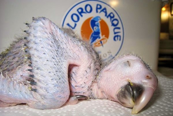 Uno de los pichones que se crían a mano en las instalaciones del Loro Parque.