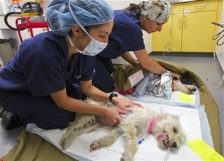 Silverman inspeccionan el estado de un par de perros esterilizados después de una