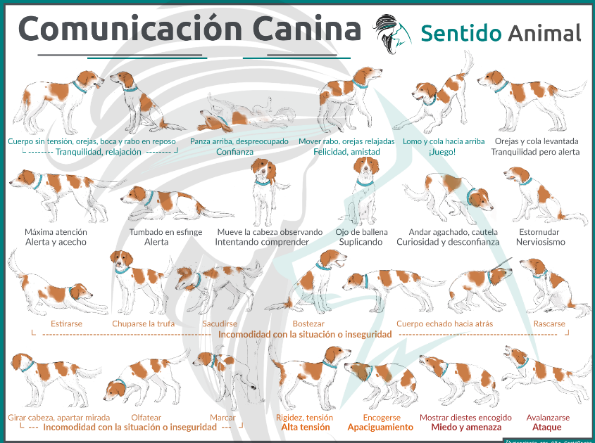 ¿Quieres saber más sobre comunicación canina? ¡No te pierdas el siguiente cartel que puedes compartir con tus contactos cercanos, y ayudar así en la comunicación de nuestros compañeros caninos.
