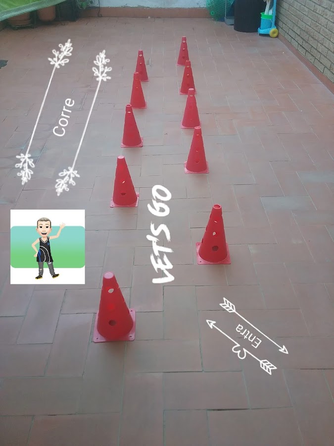 El siguiente ejercicio esta enfocado en un futuro a realizar el Slaloon, es un pasillo de conos por el que tiene que entrar y correr hasta el final.