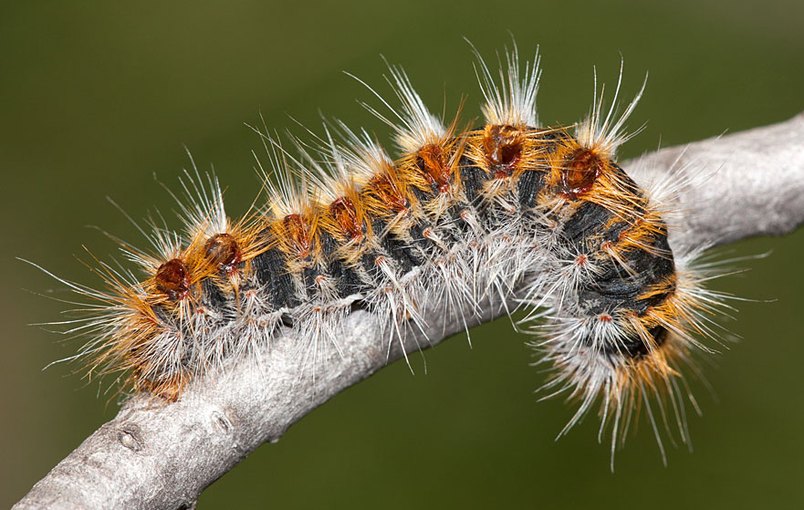 A mi parecer, las orugas resultantes son bastante bonitas. Son de color negro, pero los laterales son grises, están recubiertas por pelitos llamados tricomas y por arriba los pelitos son de color rojo.