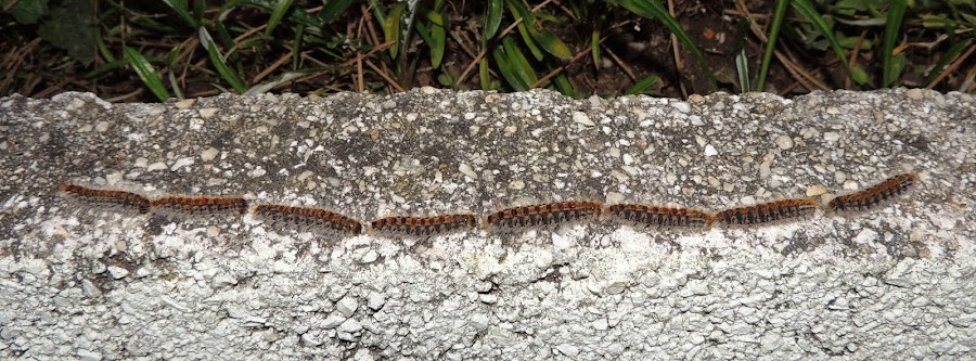 Al finalizar el invierno (de Febrero a Abril), las orugas descienden de los bolsones por el árbol y caminan por el suelo en procesión, van guiadas por una hembra que teje un hilo conductor; es el momento más peligroso, las orugas se encuentran en el suelo formando una línea que llama inevitablemente la atención.