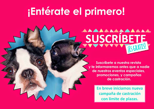 Sólo para los suscritos a nuestra revista, los mantendremos informados, antes que a nadie, de todas las campañas de castración que realicemos, eventos y todas nuestras novedades.