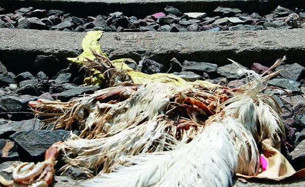 "Aquí vienen a tirar la pura maldad", dice un vendedor ambulante. A pocos metros un barrendero delegacional que observa los restos con desdén, admite su temor a contraer "aire" (las bacterias que se desprenden de los cadáveres cuando se secan) si los recoge. Frente a él, casi enterrados en los durmientes de madera, yacen tres osamentas de aves. Una de ellas, de tonos marrones, reposa en las piedras calientes de la calzada México-Tacuba.