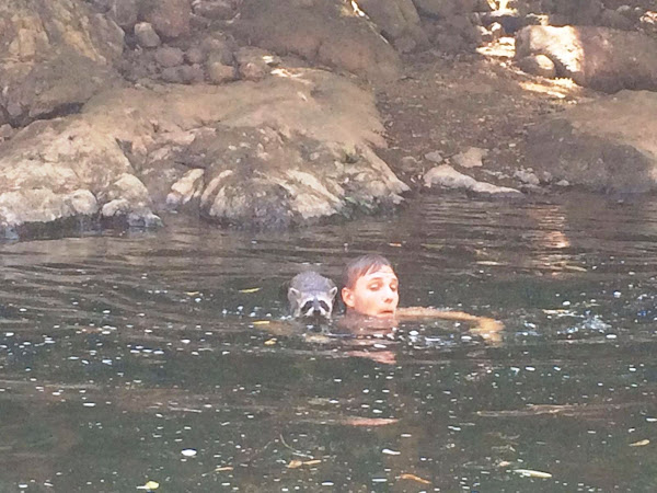 A Carlitos, uno de los mapaches cangrejeros que está en fase de readaptación y semilibertad. A Carlitos le encanta estar acompañado y es por ello que no se despega de los voluntarios nunca, incluso cuando estos se van a dar un chapuzón en la Cascada del Indio, dentro de la propia reserva, él decide sumarse a la excursión y darse un baño también. Un personaje...