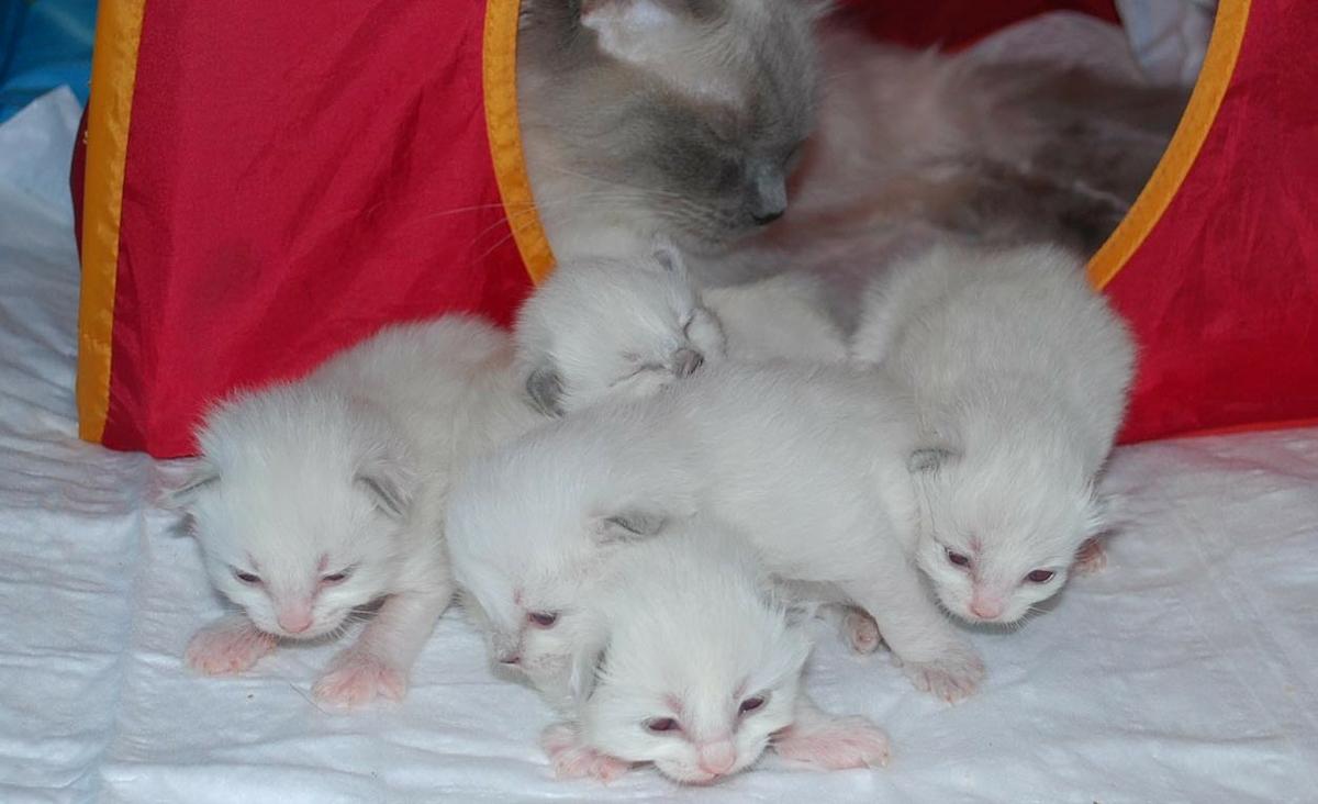 Los gatitos Ragdoll nacen casi completamente blancos.