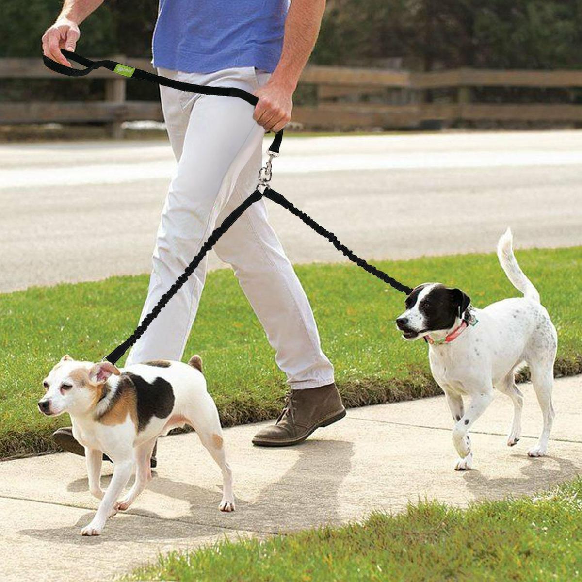 ¿Familia perruna numerosa? Esta correa te hará más fáciles los paseos porque lleva un acople para poder enganchar a dos perros a la vez y un sistema que amortigua los tirones.