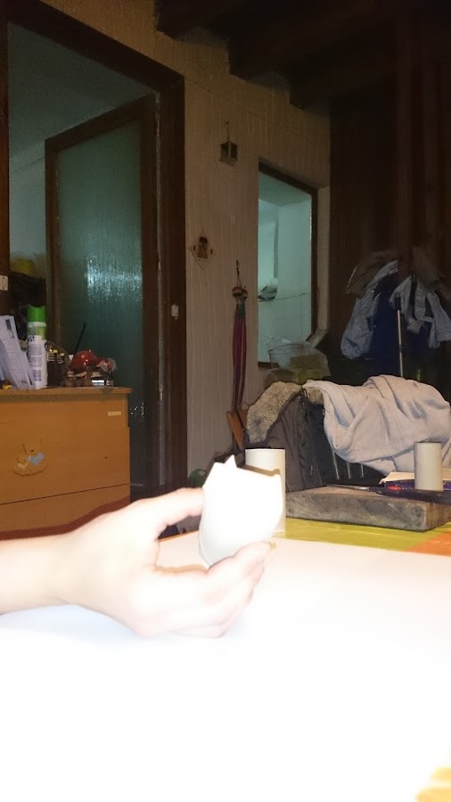 5. Si lo quieres colgar, atravesar con una aguja de lana el higiénico, hacer un nudo y colgar. Utilizar un cordón, cuerda, hilo, sin teñir, la tinta no es buena, un cordel para cocinar, los que se usan para atar las piezas de carne.