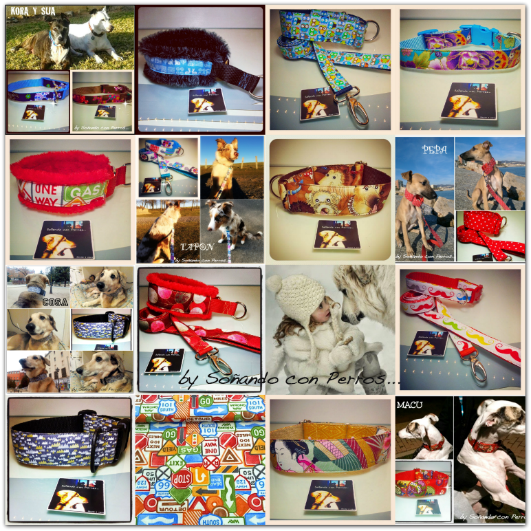 De hecho hemos incorporado muchas novedades, como telas para la temporada que ya se nos avecina, modelos de collares de clic en ancho nuevo de 4 cm, collares confeccionados con telas recién estrenadas, además de los encargos habituales junto con muchas fotos de fans peludos y hasta un vídeo recopilatorio con collares antiescape de pelo exclusivos de Soñando con Perros...