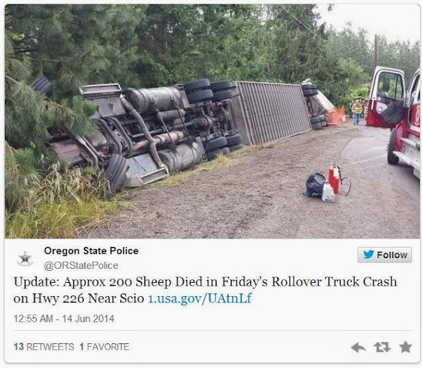 Unas 200 ovejas murieron luego de que, este viernes, el conductor del camión que las transportaba perdió el control del vehículo y terminó volcado en la autopista 226 de Oregon.