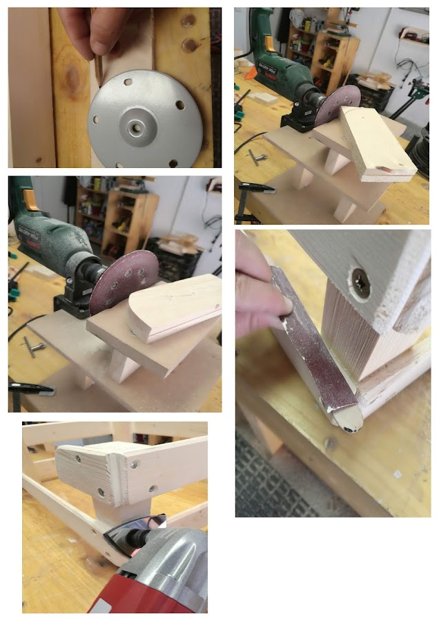 Con un palo de helado y una lija de grano fino fui lijando las esquinas y recovecos. Para las zonas mas amplias y donde no entraba una lijadora normal, usé la lijadora de la multiherramienta.