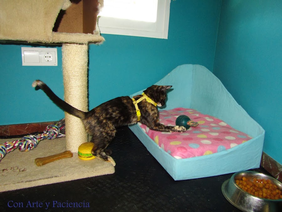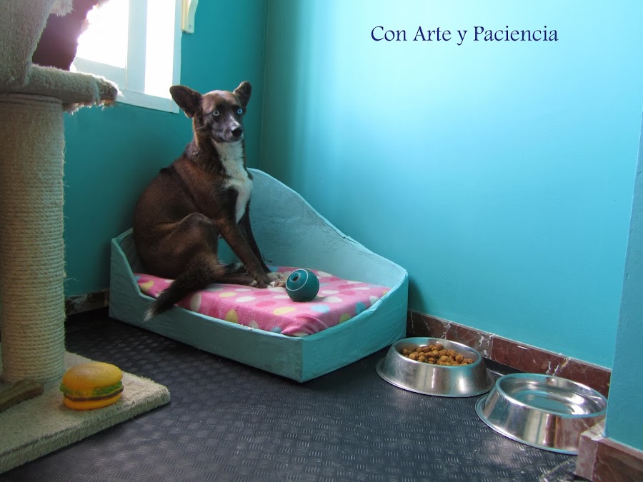 Nuestros animales necesitan descansar (o jugar como veis aquí A Zara) y que mejor que un silloncito hecho por nosotros mismos y que combine con el cuarto.