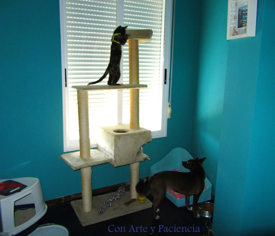 Si tenéis opción, os recomiendo que el espacio tenga una ventana para que se entretengan curioseando y no tengan la sensación de estar encerrados. Asimismo, evitamos olores provenientes del arenero del gatito.