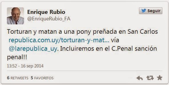 En relación a este tema, el senador del Frente Amplio, Enrique Rubio, anunció hoy en su cuenta de Twitter que incluirán una sanción para la tortura de animales en el nuevo Código Penal: