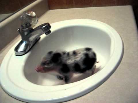 Te has de preguntar quién es Spunky, es un pequeño cerdito al que van a bañar por primera vez, y ya se encuentra listo en el lavabo para poder darle un aseo, mira lo pequeñín que es, nos platica su propietaria que este es un cerdito que cuidan con cariño y ahora es una mascota entrañable para ellos.