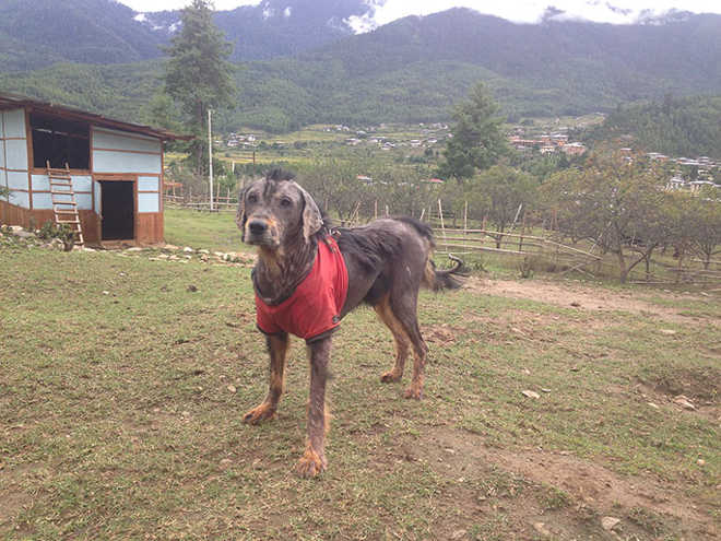 Fue a mediados de septiembre en una región montañosa de Bután, un país situado en el extremo oriental de la cordillera del Himalaya, cuando el cineasta y activista de los derechos animales Tim Gorski encontraron un perro completamente desesperado por ayuda y casi sin pelos debido a una sarna ya avanzada.