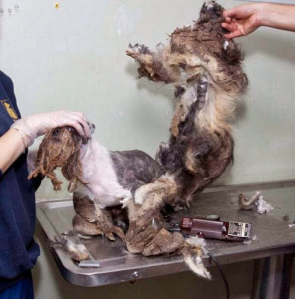 Un grupo de Canadá, la sociedad de Quebec para la protección de los animales, encontró al perro que ves abajo en las calles. Estaba tan sucio y su pelo tan enmarañado, que apenas podía ser reconocido como un animal.