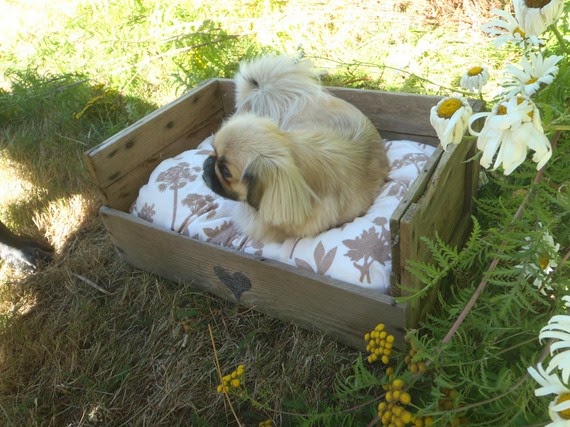 solo necesitáis una caja de madera del tamaño que se adecue a vuestro gato o perro...........y colocarle un cojín con funda para que podáis lavarlo con comodidad ...........¡y voilà!