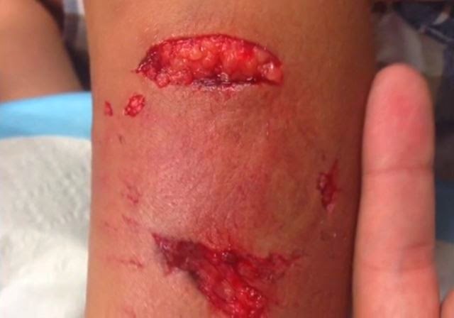 Heridas sufridas por Jeremy por el ataque del perro. Foto: www.turnto23.com