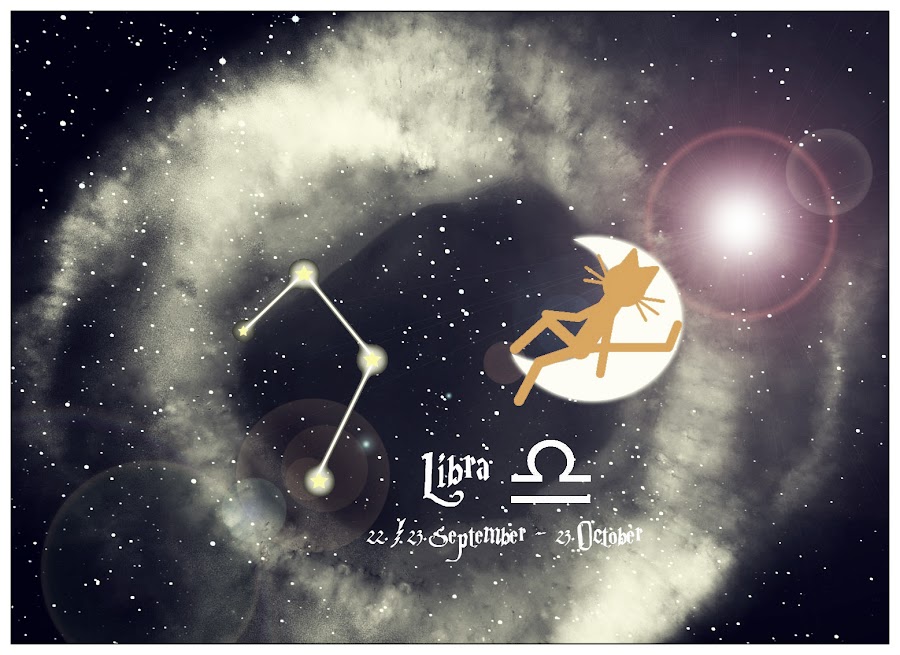 El gato Libra solicitará amor y atención, es encantador, sofisticado y muy intuitivo, aunque también algo indeciso. Es un gato moderado en todos los aspectos, al que muy raramente se le puede ver enfadado. Dada su exquisitez, es extremadamente cuidadoso con su apariencia y su aseo personal.